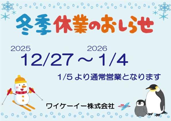 2025年12月27日(土)~2026年1月4日(日)まで休業させていただきます。